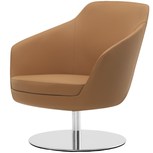 Modern lounge armchair with metal swivel base, available chromed or black colour. One-piece shell with internal steel frame fully padded with cold-cured PU foam upholstered in fabric, leather or eco-leather.Suitable for home, contract, naval use. Ideal for restaurant, bar, b&b, hotel, reception, cafès, meeting room or waiting room. Fireproof internal padding according to the following regulations: Class 1IM, French class M4, California Bulletin 117:2013.