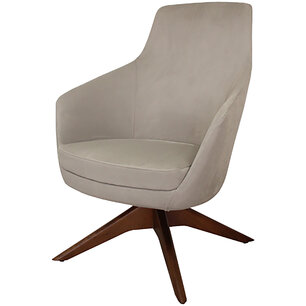 Modern lounge armchair with ash wood swivel base, available in a choice of finishes. One-piece shell with internal steel frame fully padded with cold-cured PU foam upholstered in fabric, leather or eco-leather.Suitable for home, contract, naval use. Ideal for restaurant, bar, b&b, hotel, reception, cafès, meeting room or waiting room. Fireproof internal padding according to the following regulations: Class 1IM, French class M4, California Bulletin 117:2013.