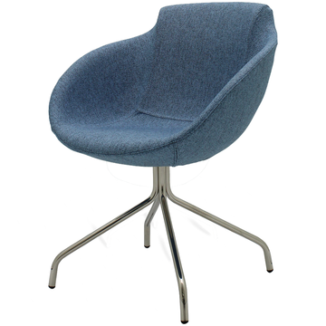 Modern armchair with metal swivel base, available chromed or black colour. One-piece shell with internal steel frame fully padded with cold-cured PU foam upholstered in fabric, leather or eco-leather.Suitable for home, contract, office or naval use. Ideal for restaurant, bar, b&b, hotel, reception, cafès, meeting room or waiting room. Fireproof internal padding according to the following regulations: Class 1IM, French class M4, California Bulletin 117:2013.