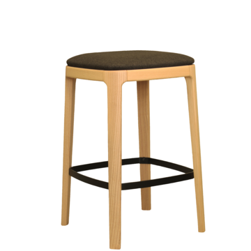 Modern barstool with solid beech or ash wood legs. Available in a choice of finishes. Plywood frame padded with flexible PU foam. Available in different coverings: fabric, eco-leather and leather. Suitable for different uses such as: home, contract, naval, restaurant, caffè, b&b, reception, bar, hotel.