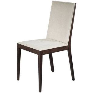 ATTENTION: MODEL AVAILABLE FOR MOQ 50 PIECES. Modern chari made in solid beech or ash wood, available in a choice of finishes. Plywood backrest and pressed wood seat padded with flexible PU foam, upholstered in different coverings: fabric, eco-leather or leather. Ideal for home use. Minimum order quantities apply for this chair.