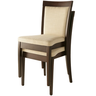 Contemporary chair made in solid beech wood. Backrest in beech wood veneer honeycombed manufactured, available in a choice of finishes. Pressed wood seat padded with flexible PU foam, upholstered in different coverings:fabric, eco-leather or leather. Stackable heavy duty model, ideal for home, naval, contract, bar, caffè, restaurant, b&b, hotel etc.