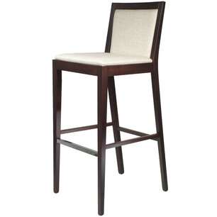 Contemporary barstool made in solid beech wood. Backrest in beech wood veneer honeycombed manufactured, available in a choice of finishes. Pressed wood seat padded with flexible PU foam, upholstered in different coverings:fabric, eco-leather or leather. Heavy duty model, ideal for home, naval, contract, bar, caffè, restaurant, b&b, hotel etc.