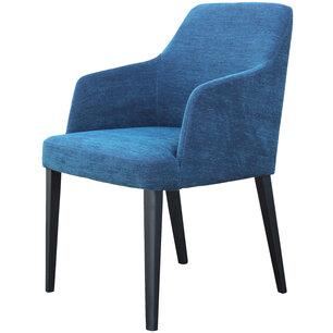 Poltroncina moderna con braccioli in massello di faggio o frassino. Verniciatura personalizzabile in tinte da campionario. Struttura in multistrato imbottita in poliuretano espanso elastico, disponibile in diversi rivestimenti: stoffa, ecopelle o pelle. Ideale per arredare sia la casa che per uso contract come hotel, dalla reception alle camera, ristorante, bar o caffetteria. Grazie alla struttura rinforzata è adatta anche all'uso navale.