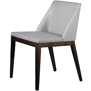 Sedia dallo stile moderno in massello di faggio o frassino. Verniciatura personalizzabile in tinte da campionario. Struttura in multistrato imbottita in poliuretano espaso elastico, disponibile in diversi rivestimento: stoffa, ecopelle, pelle. Seduta adatta sia all'uso casa che al contract per l'arredamento di ristorante, bar, hotel, b&b, caffè, reception, sala d'attesa.