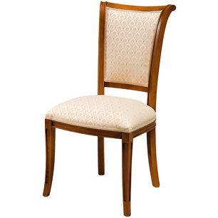 Sedia dal design classico in massello di faggio, verniciatura personalizzabile in tinte da campionario. Seduta e schienale imbottiti in poliuretano espaso elastico disponibili in diversi rivestimenti: stoffa, ecopelle e pelle. Seduta adatta per diversi usi: casa, casa di riposo, navale, contract, bar, ristorante, hotel, b&b,lounge caffè, reception, sala d'attesa etc. Per uso intensivo consigliamo inserimento di rinforzi a vista.