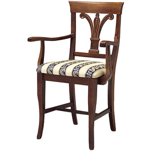 ATTENZIONE: MODELLO DISPONIBILE PER QUANTITA' MINIMA DI 16 PEZZI ORDINE. Sedia con braccioli stile arte povera in massello di faggio o frassino. Verniciatura personalizzabile in tinte da campionario. Seduta disponibile in diverse versioni: legno, paglia o imbottita in stoffa o ecopelle. Seduta adatta agli usi più diversi:casa, contract, ristorante, b&b, caffè, hotel, reception, catering etc.